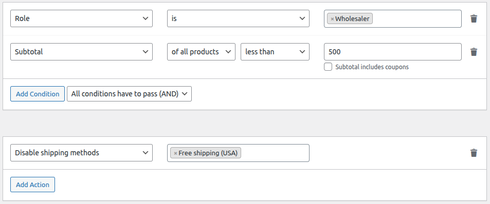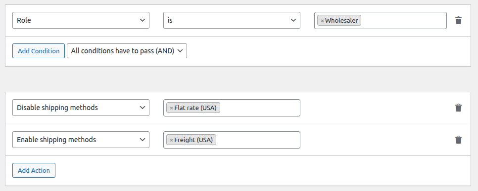 - Go to WooCommerce > Settings > Shipping > Conditions