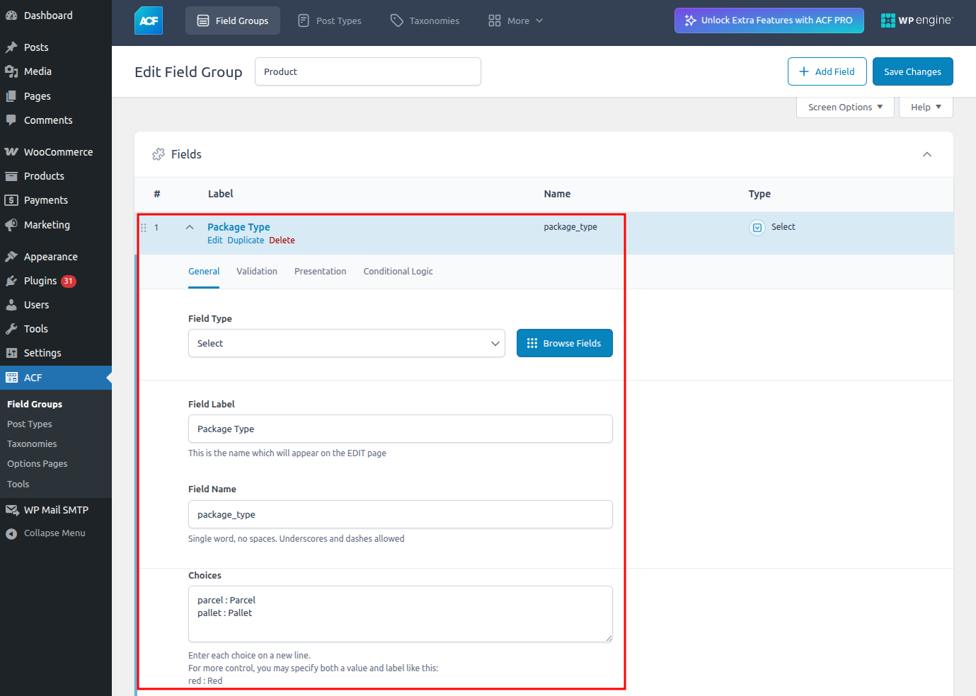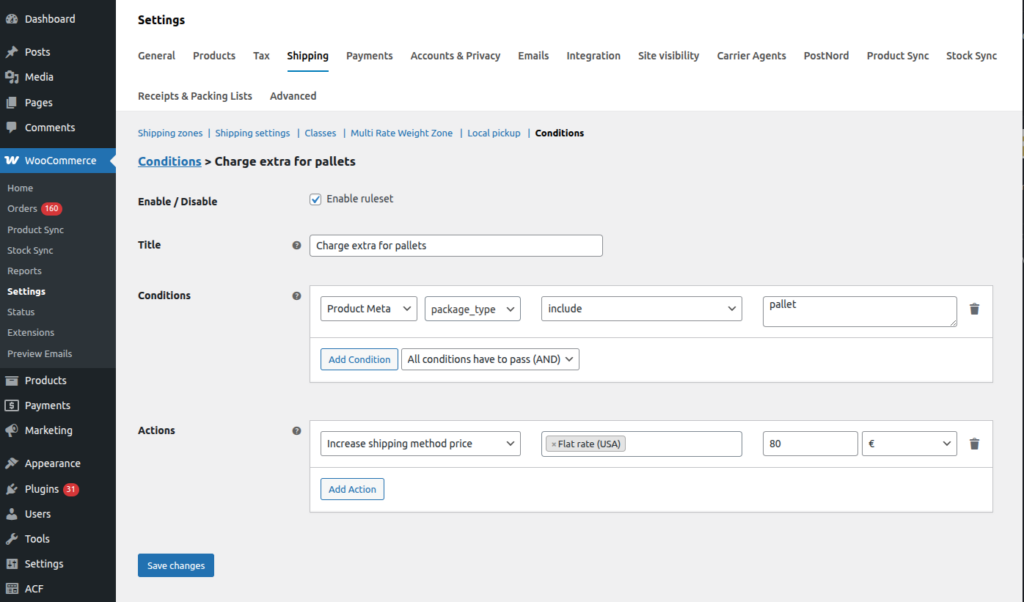 WooCommerce Conditional Shipping Pro makes this easy with the Product Meta condition. You can add custom meta fields using various plugins, with Advanced Custom Fields being a popular choice. In this example, you will learn how to add an extra shipping charge for products shipped on a pallet.